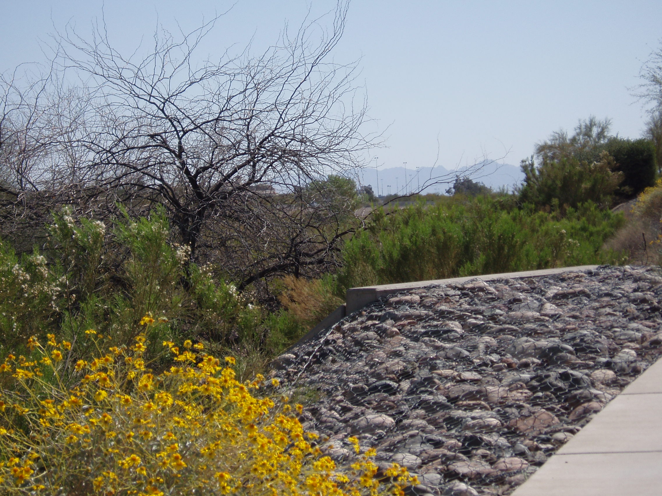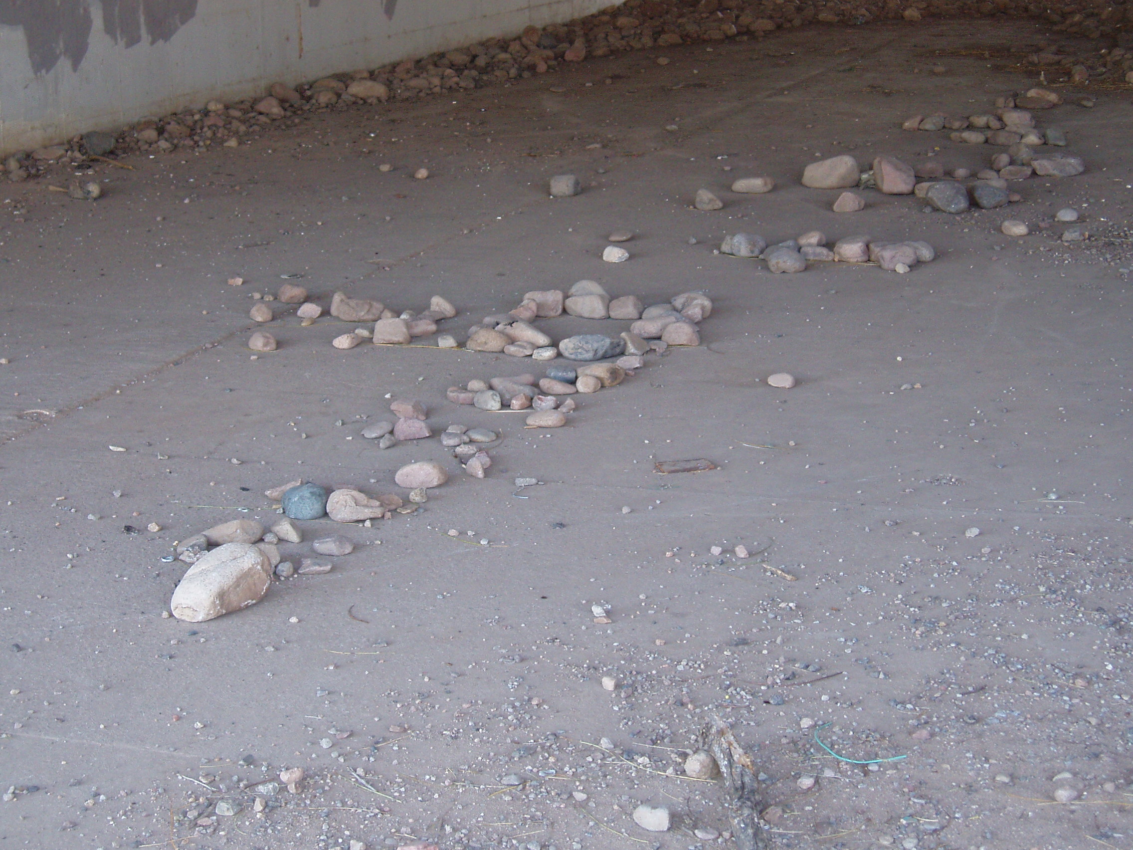 We scouted on the trail for about 4 miles – a nice walk to burn off some calories from that pulled pork sandwich. Granted, it was a midweek afternoon but we ran into a lot of bicyclists and dog walkers, which made for a friendly walk. There was an interesting rock arrangement in the underpass. I have seen errant stones in various washes and sidewalks throughout the area, and I can’t figure out if people are arranging the stones or if the stones are arranged by flash floods. You can look at it and decide for yourself, while I live with the mystery.