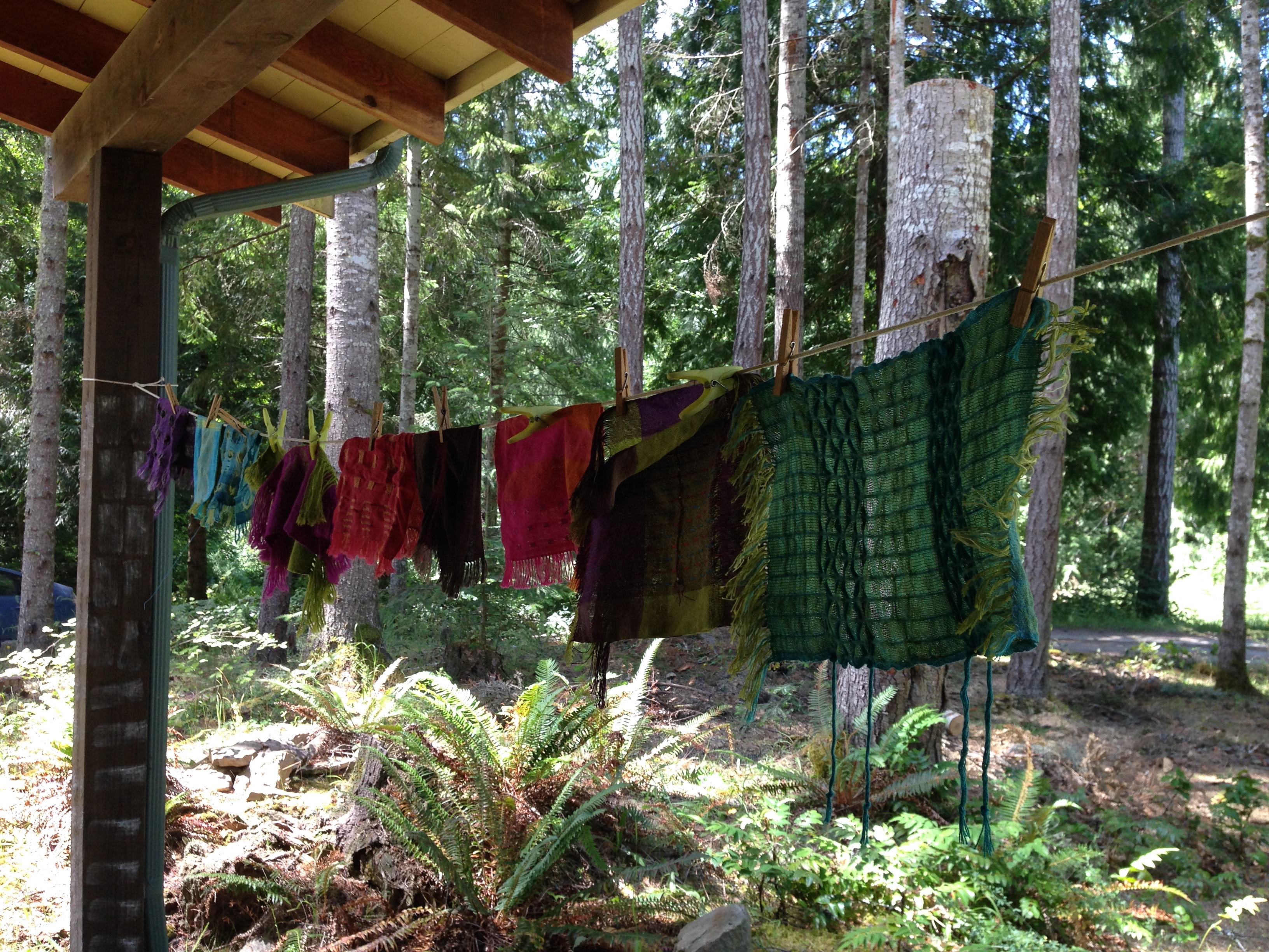 Friday came all too soon. The morning was on high alert as we reviewed our lessons from the week, finished the last of the samples, cut them off the looms, and completed washing, waulking and felting! A bit of sadness touched our group as we sat together for our last meal. Yet we were all happy in the sense of accomplishment and learning that occurred that week. Jane empowered us with tools and perspectives that we will carry with us on our continuing weaving journey.