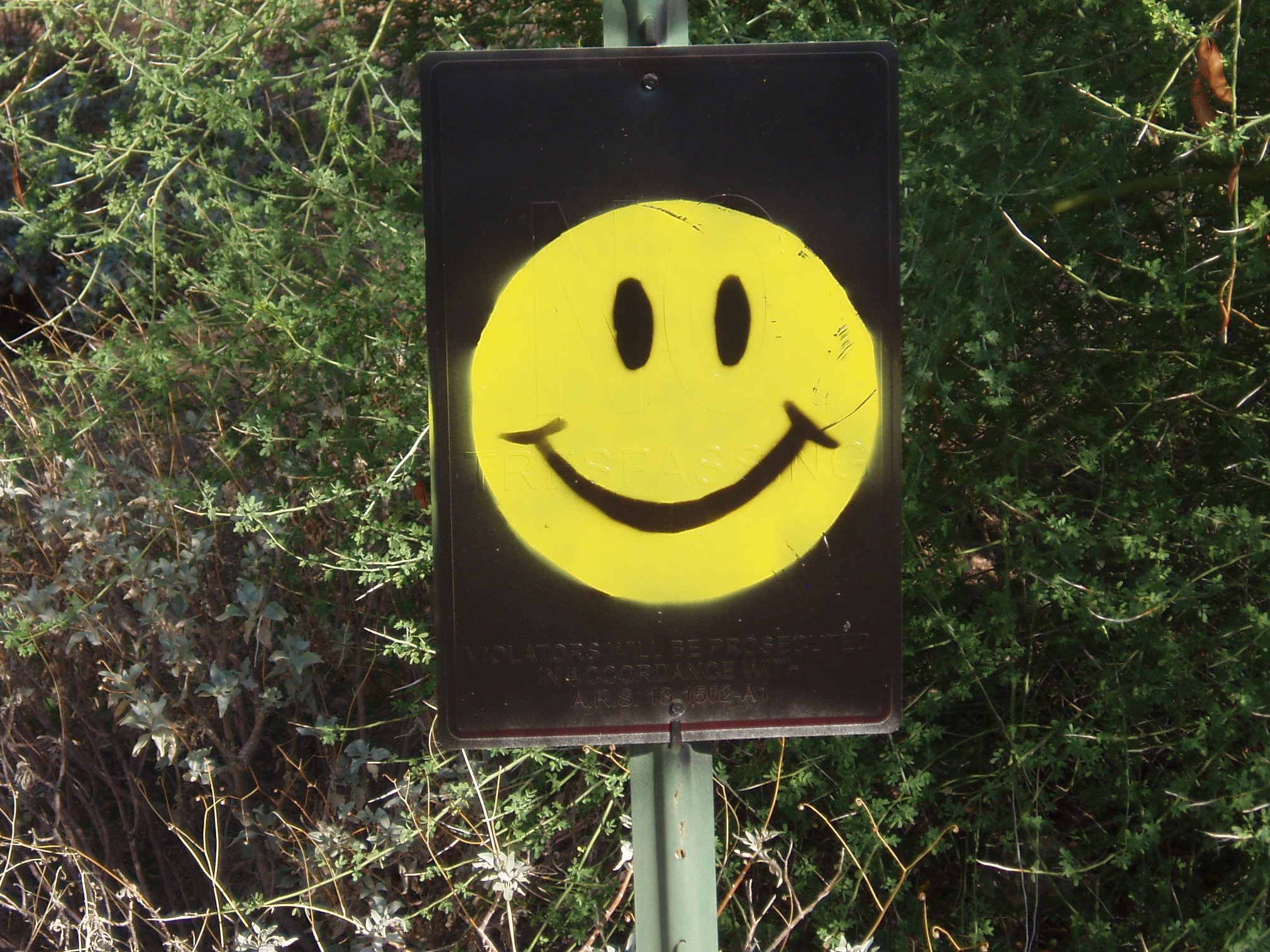 Every morning Denny and I have been able to walk early in morning, before the heat arrests the day. These little smiley signs are posted along both Pinnacle Peak Road and 91st Street. The hysterical part about it is that they are painted over a “no trespassing” background. My guess is that between rabbit, gecko and quail – in addition to the horses in the area – that the signs were ineffective so now they serve a better purpose.