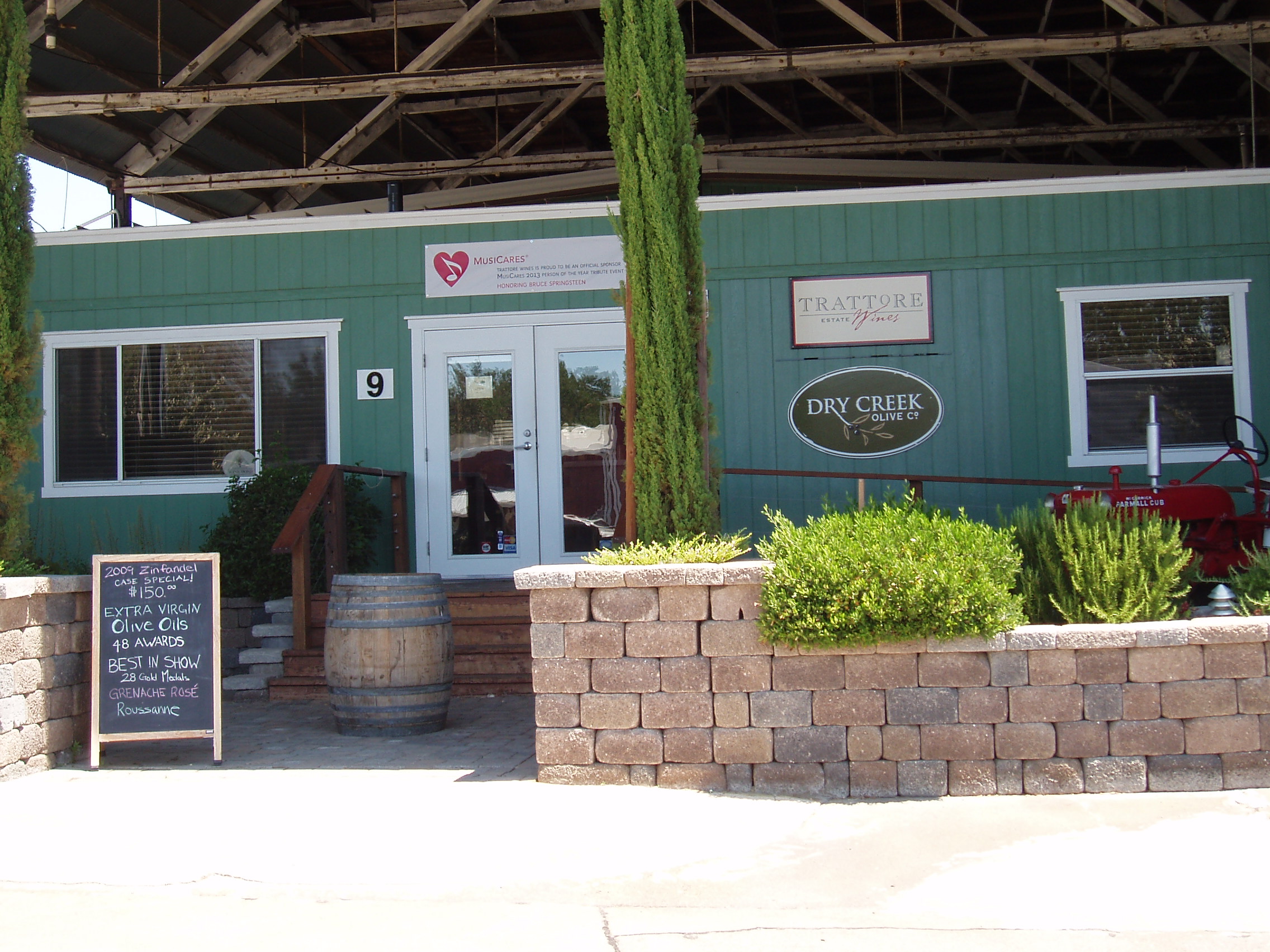 Did I mention how nice the weather was? Maybe a little humid, but in the upper 80’s which still felt like heaven to us. Fast-forwarding through downtown Healdsburg there were a lot of changes to note from two years ago. As promised, there was a stop at Dry Creek Olive Oil Company for an olive oil tasting. A few new varieties, all good. A brown bag was in my hand when I left (;)). Lunch al fresco at Forchini Winery – another recycled bottle added to the collection – followed a peek (with the owner) at the just-bottled reserve. Wine-drenched cork and wet barrels bring back childhood memories from when my grandfather made his own wine in his garage. I was in no shape to sample the wares at our next stop, Soda Rock Winery. But I did manage to drag myself from the car in time to transfer an un-drunk bottle from their collection to ours.