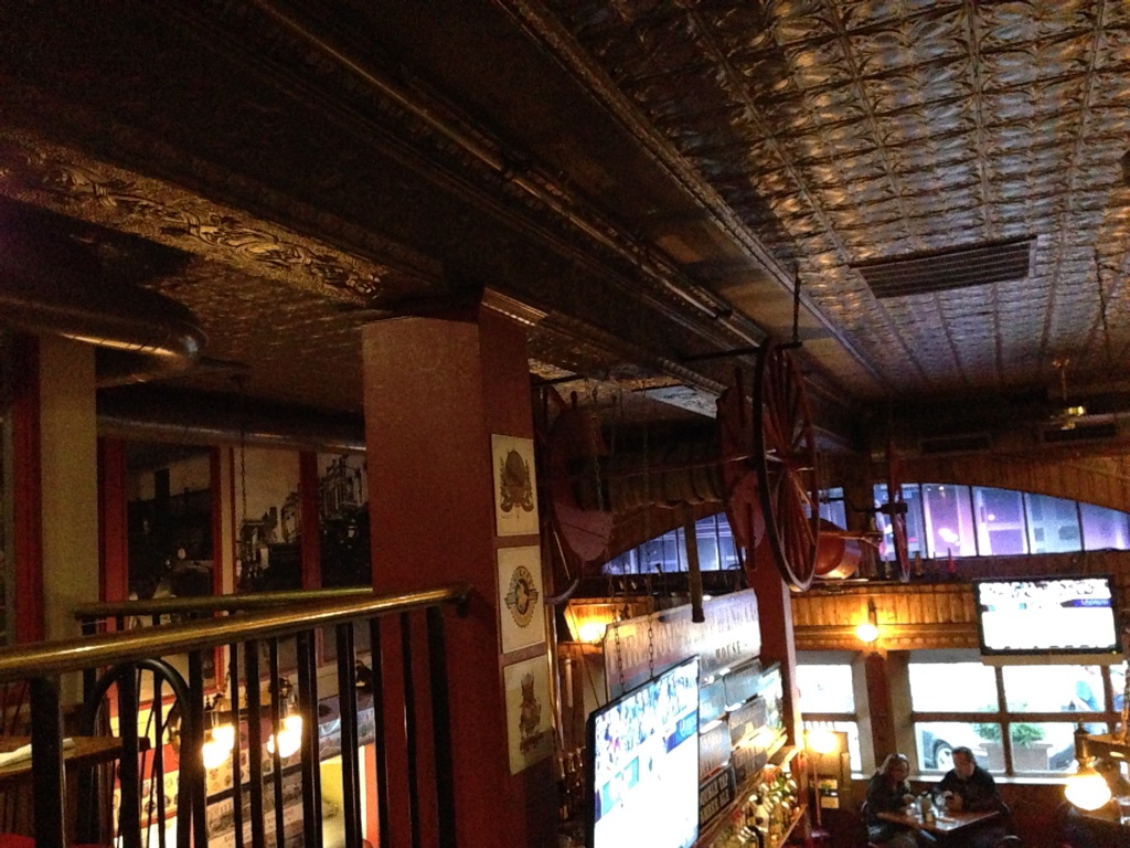 We arrived just around 6PM. By the time we checked into our hotel on the outskirts, Rapid City downtown was still hopping as we explored for eats. July being the height of the summer season, the tourist pull is as strong as a magnetic closure on a purse. A quick cruise on Main Street confirmed the Firehouse Brewing Company as a top hot spot. Located on Main Street near the main city square, it occupies the old fire station, and has a huge patio (with live entertainment), as well as separate wine tasting and souvenir storefronts. All were humming. We knew we had to check it out, so we waited about 40 minutes for seating, which was in the top level of the interior. Turned out it was the best seat in the house – got to check out the elaborate bar and copper ceiling, as well as all the restaurant traffic. The house-brewed beer makes up for any diversity the standard pub grub menu might lack. We were definitely there for the beer, after all. I really enjoyed my cocoa-nib infused Saison beer – just enough tartness and sweet to balance out without being cloying. Denny enjoyed the Amber.