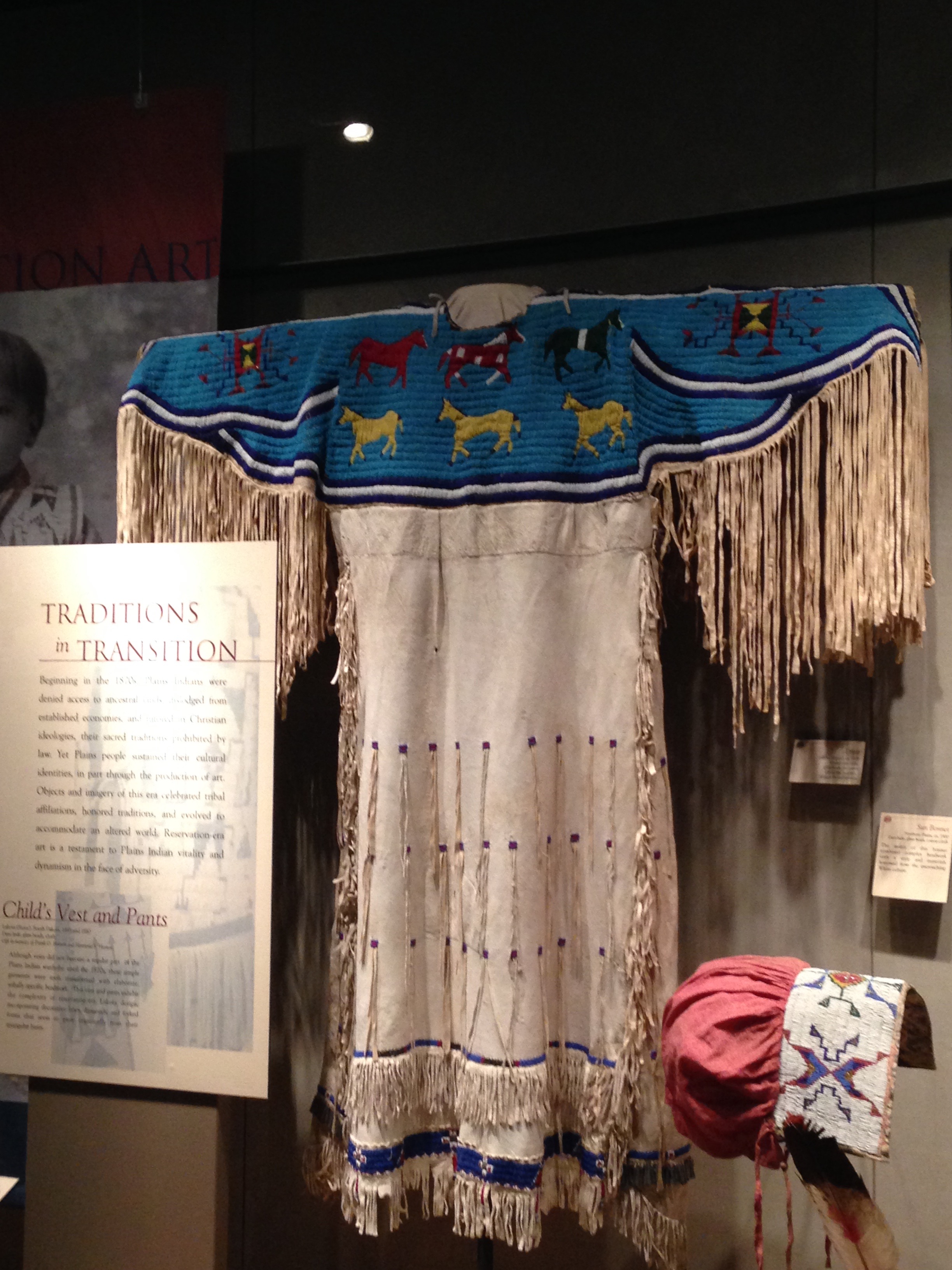 I really enjoyed being able to examine the clothing and textiles on display. Some of the handwork is incredibly intricate, and I am always amazed at how the Native American women crafted their hand-woven clothing without a lot of scissors and needles. The cutwork on the deerskin was incredible as well. Not an inch of waste.